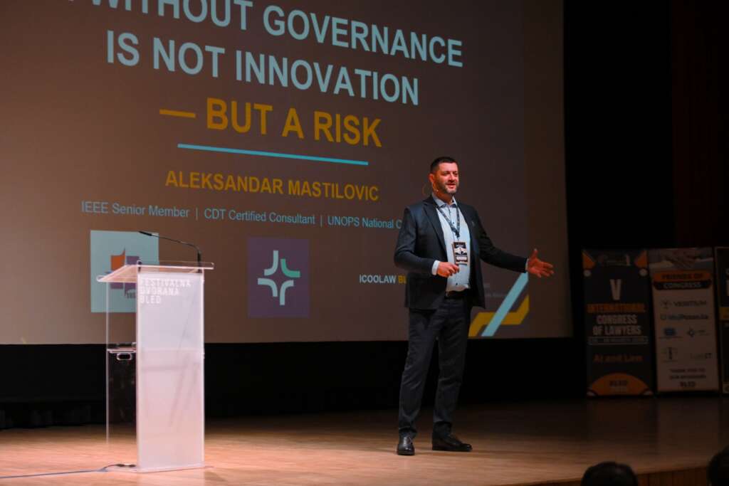 Посебну пажњу привукло је излагање Александра Мастиловића, који је указао да вештачка интелигенција, уколико није адекватно регулисана и вођена, не представља искључиво иновацију, већ и потенцијални ризик. Његов приступ отворио је значајна питања одговорности и управљања у области AI система.